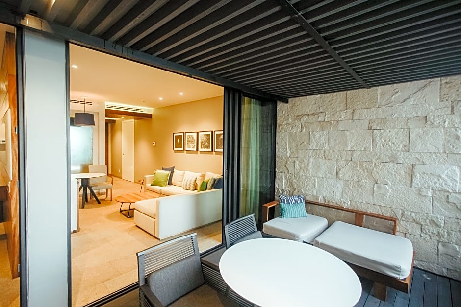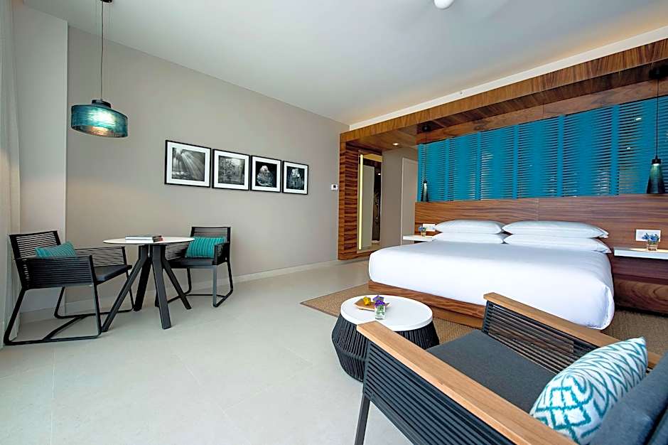 This room includes a furnished balcony, perfect to relax and enjoy views of the Caribbean. A double sink and an additional rain shower await in the stunning bathroom
